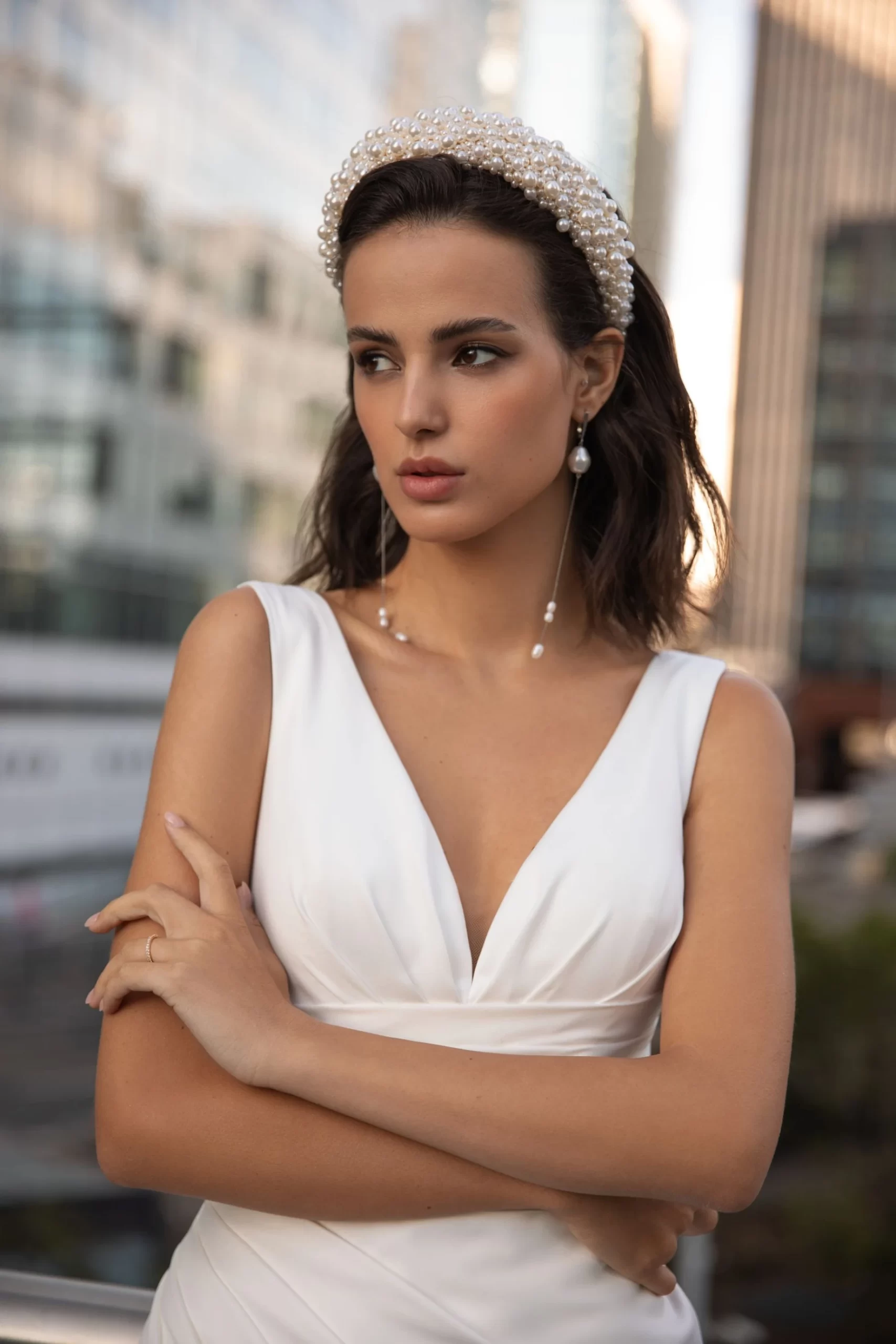The Aimi wedding dress with the fitted silhouette in the trendy ivory color is the choice of modern beauties who follow fashion trends.