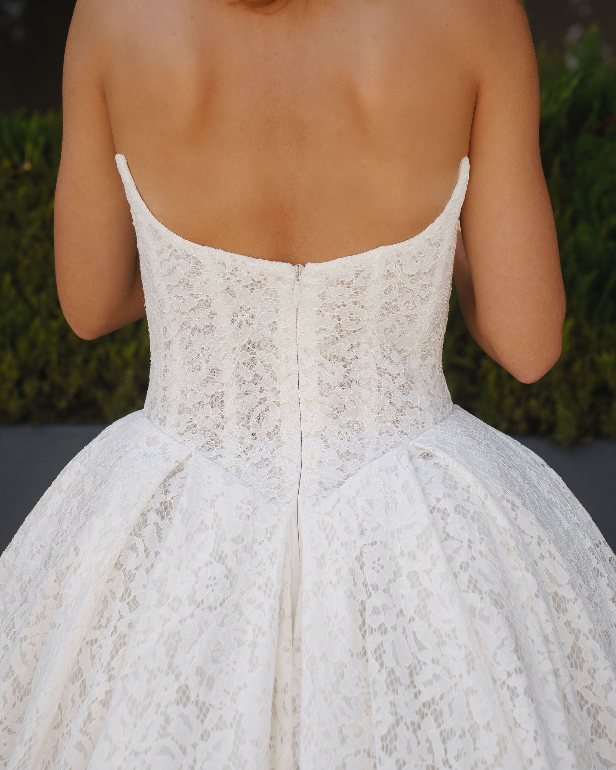 Command the room in DOLCE ! A  dramatic full lace ballgown, a true masterpiece for the bride who dreams of romance, grandeur, and timeless beauty. Designed with a luxurious sweetheart neckline, this gown evokes the elegance of a royal era while embracing modern bridal sophistication. Crafted entirely from intricate lace,...