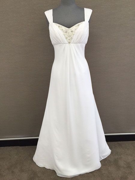 A classic, simple debutante gown, with a beautiful sweetheart neckline and beading within the bodice. Simple cap sleeves with a flowy fit.