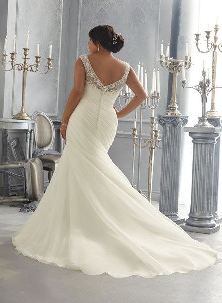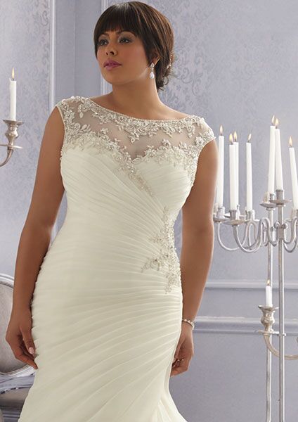 Plus size wedding dress with crystal beaded embroidery on organza. Available in White/Silver, Ivory/Silver.