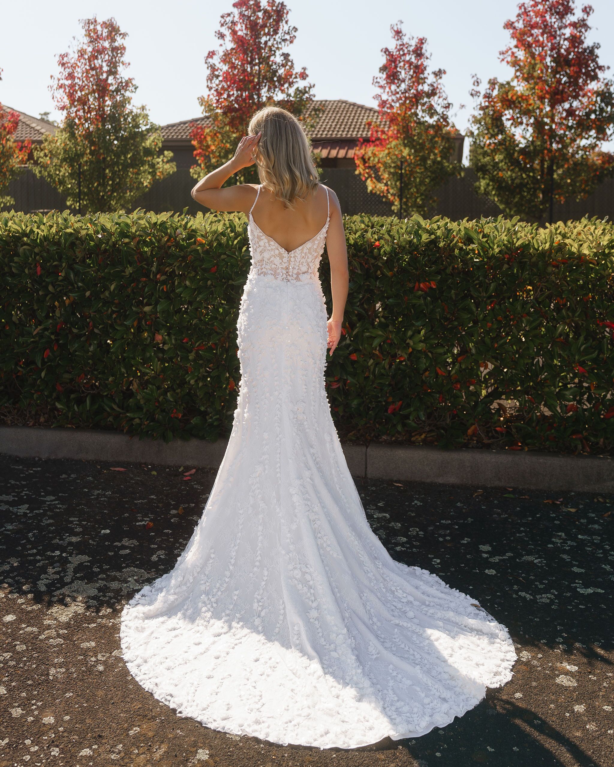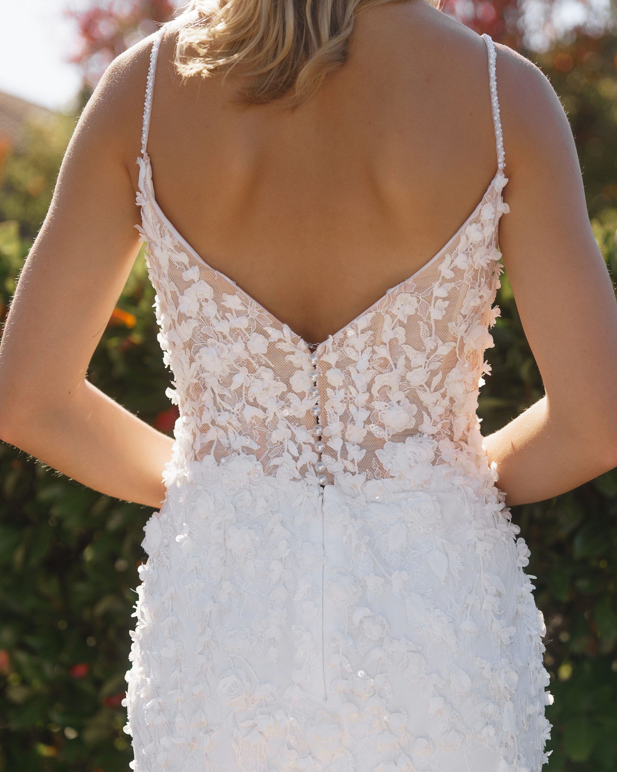 LATICA Wedding Gown with 3D Floral Appliqué and Beaded Straps – Modern Romantic Bridal Dress.