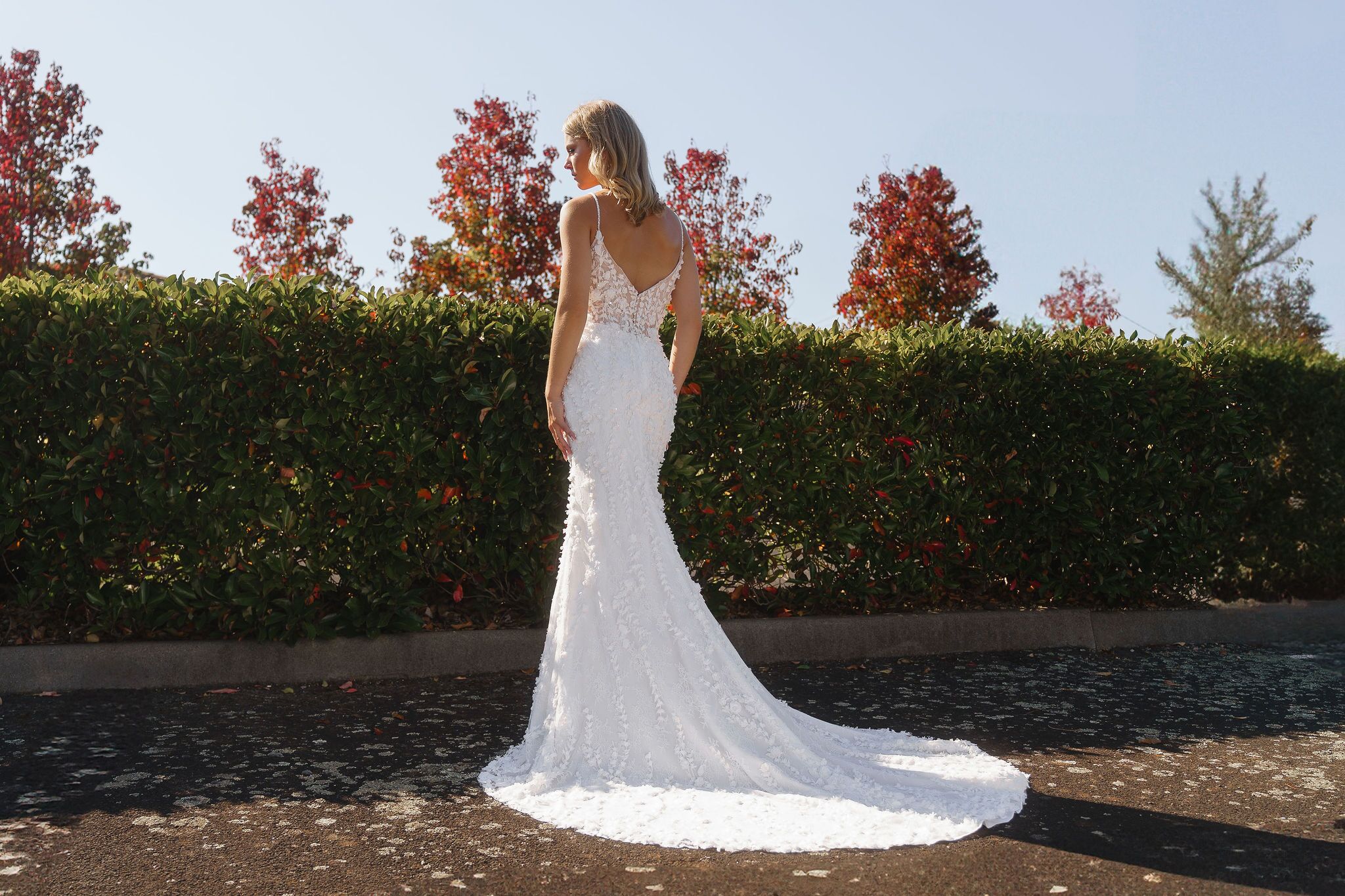 Graceful and refined, our LATICA wedding gown featured here in ivory/nude is designed for the bride who adores soft romance with a contemporary edge. The sleek column silhouette offers a flattering, elongating effect, skimming the body for a sophisticated, minimalist fit.