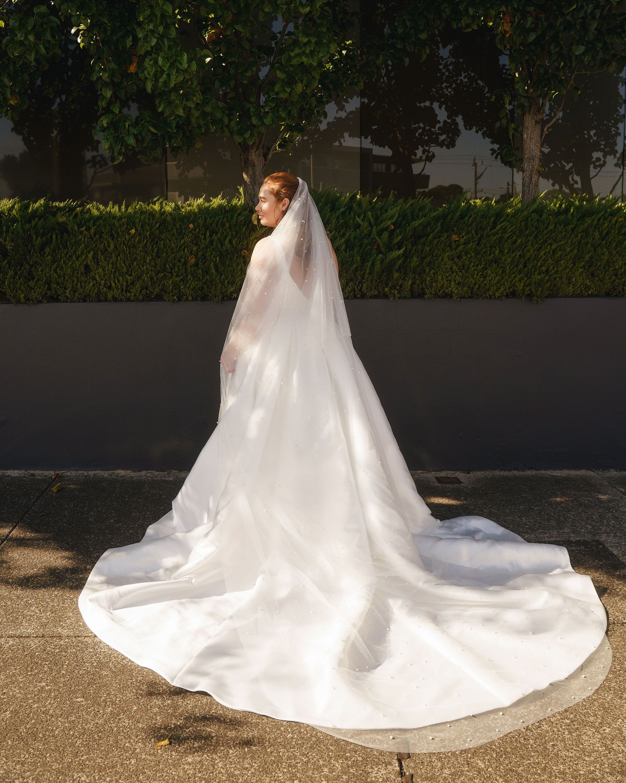 Designed for the bride who loves understated luxury, this plus-size pleated satin ballgown is effortlessly regal and endlessly flattering.