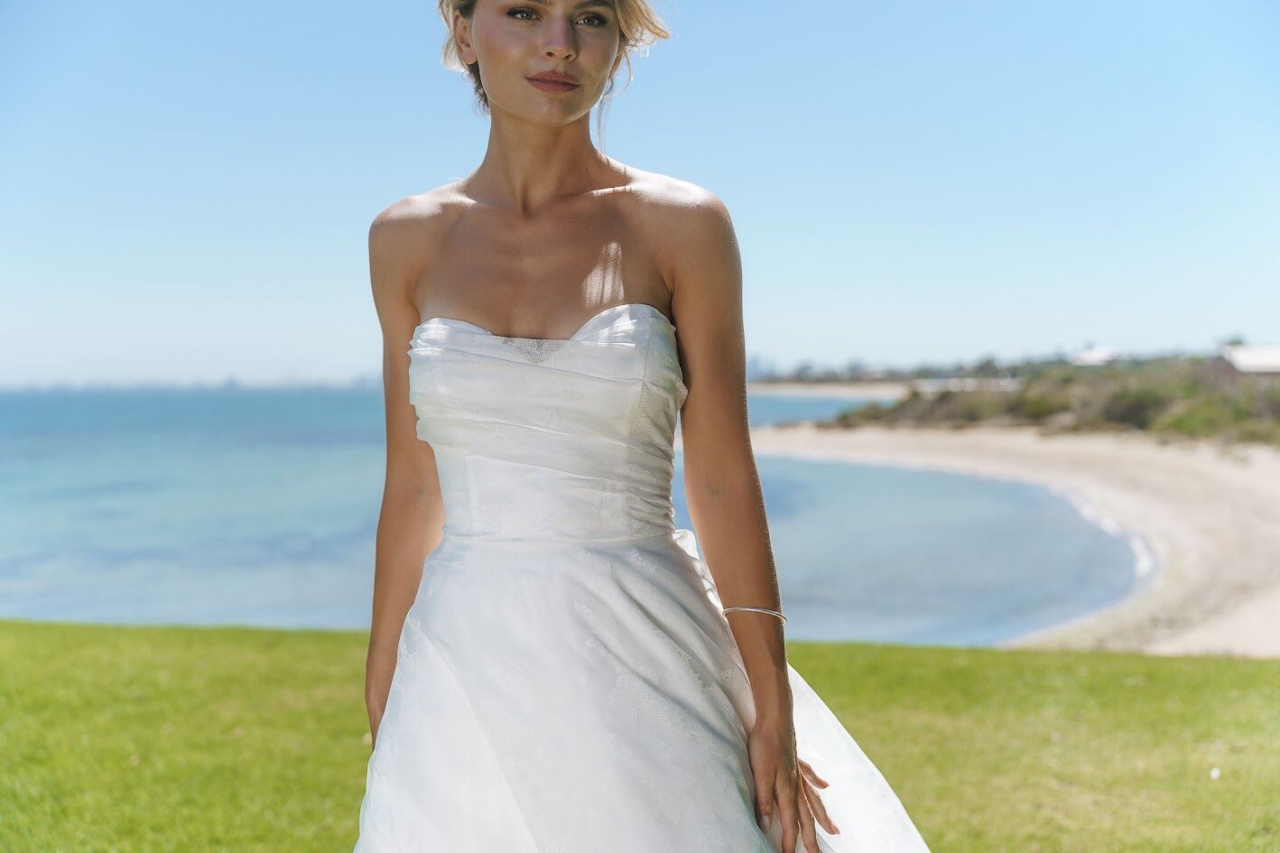 TAYLOR is a perfect blend of romance and modern elegance. Featuring embossed organza fabric, creating a 3D like effect, a stunning A-line silhouette creating a dreamy and ethereal look and a structured softly pleated bodice for structure. This gown is ideal for brides who want to exude a blend of...